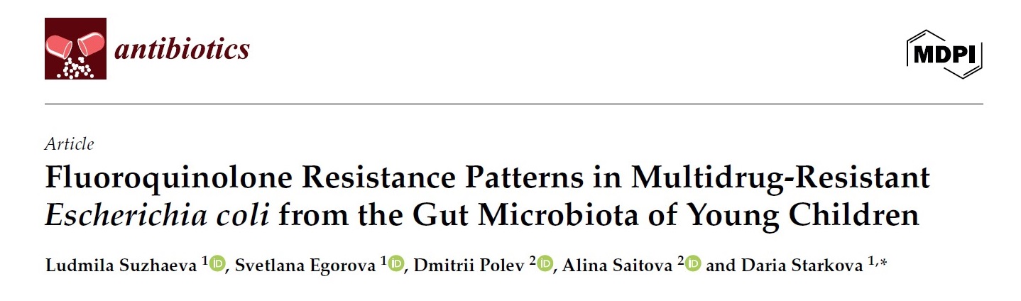 В феврале 2026 г. в журнале Antibiotics (издательство MDPI) опубликована статья «Fluoroquinolone Resistance Patterns in Multidrug-Resistant Escherichia coli from the Gut Microbiota of Young Children», подготовленная сотрудниками лаборатории идентификации патогенов и лаборатории метагеномных исследований Санкт-Петербургского НИИ эпидемиологии и микробиологии имени Пастера (авторы – Людмила Сужаева, Светлана Егорова, Дмитрий Полев, Алина Саитова и Дарья Старкова).