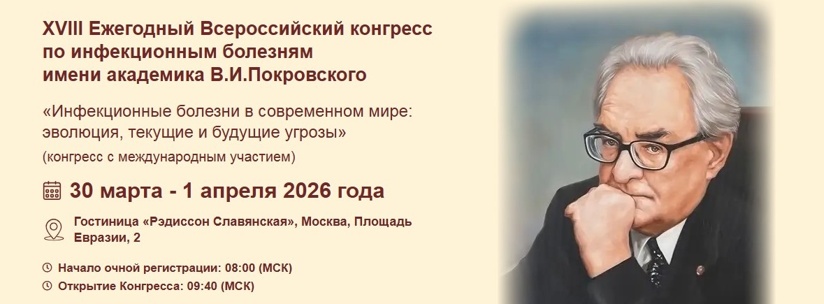 С 30 марта по 1 апреля 2026 г. в Москве проходил XVIII Ежегодный Всероссийский Конгресс по инфекционным болезням имени академика В.И. Покровского «Инфекционные болезни в современном мире: эволюция, текущие и будущие угрозы».