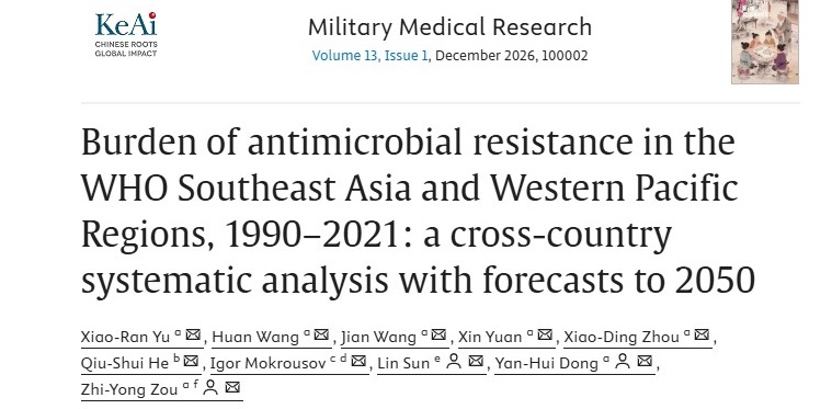 В журнале «Military Medical Research» опубликована статяю «Burden of antimicrobial resistance in the WHO Southeast Asia and Western Pacific Regions, 1990–2021: a cross-country systematic analysis with forecasts to 2050», одним из соавторов которой является заведующий лабораторией молекулярной эпидемиологии и эволюционной генетики Института, д.б.н. Игорь Мокроусов.