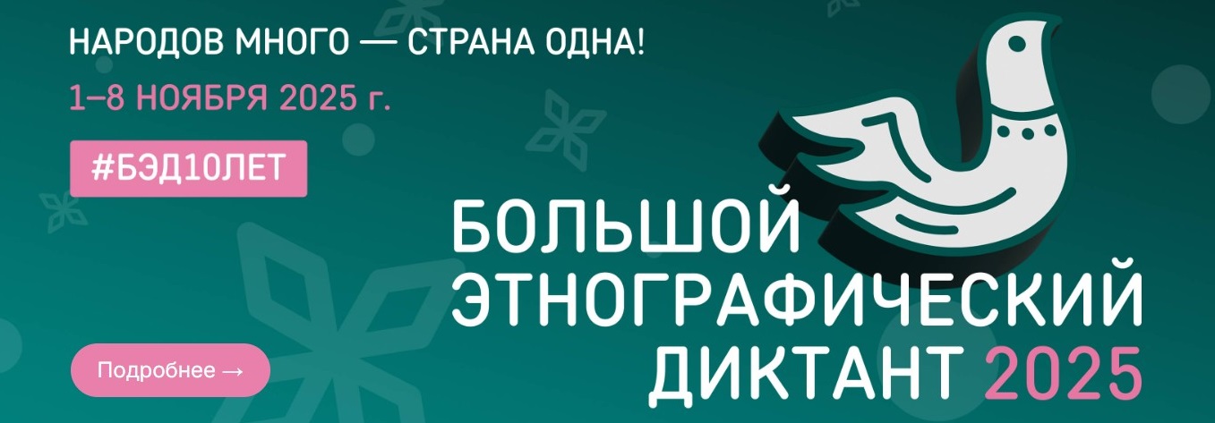 С 1 по 8 ноября 2025 г. во всех субъектах Российской Федерации и в зарубежных странах пройдет Юбилейная X Всероссийская просветительская акция «Большой этнографический диктант».