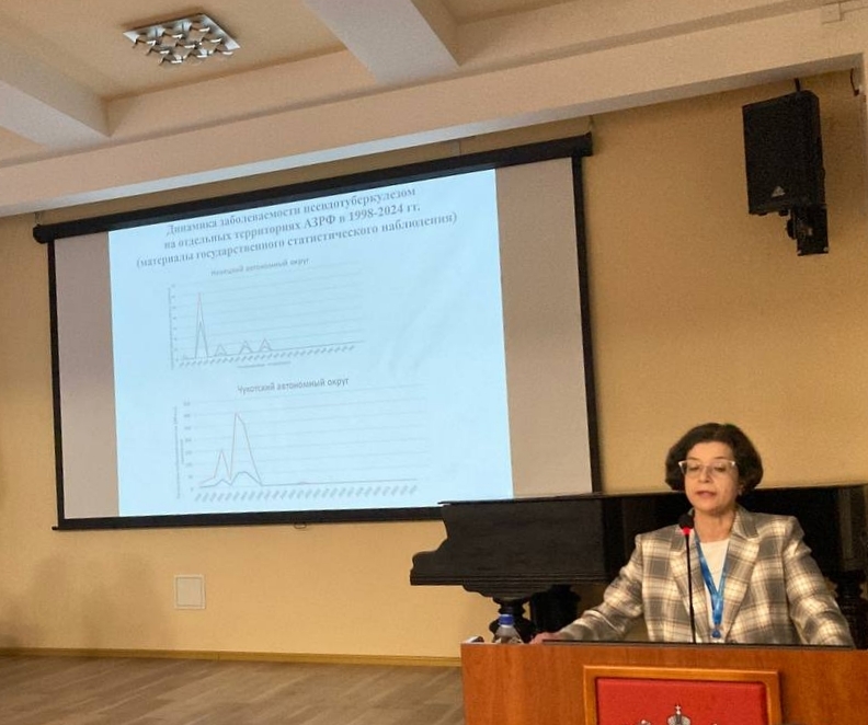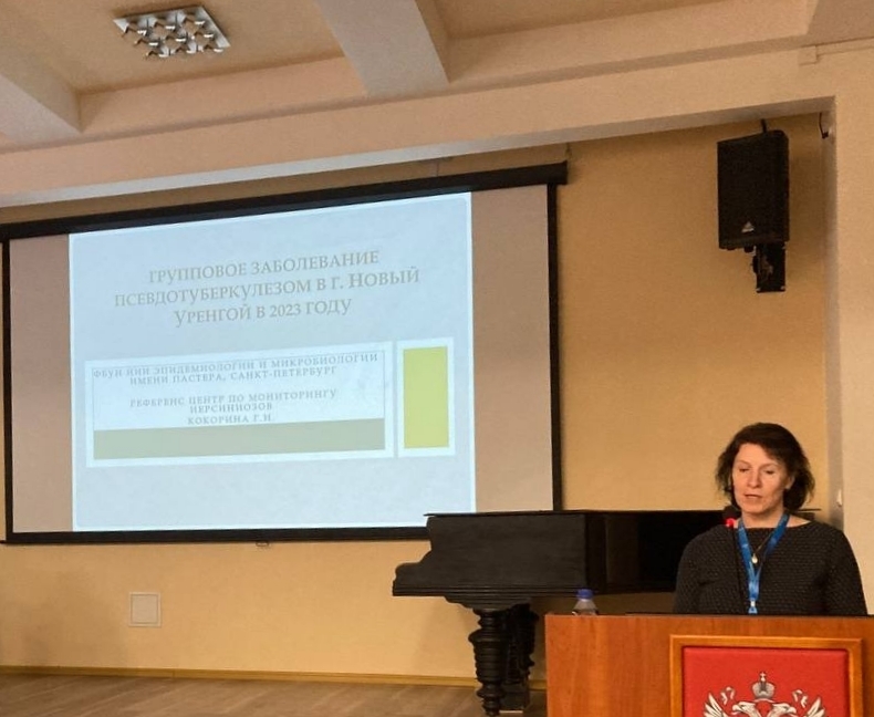 Санкт-Петербургский НИИ эпидемиологии и микробиологии имени Пастера представили ведущий научный сотрудник лаборатории медицинской бактериологии, руководитель Российского Референс-центра по мониторингу иерсиниозов, к.б.н. Воскресенская Екатерина Александровна с докладом «Эпидемиологическая характеристика псевдотуберкулеза и кишечного иерсиниоза на территориях Арктической зоны РФ» и старший научный сотрудник лаборатории медицинской бактериологии, к.м.н. Кокорина Галина Ивановна с докладом «Групповое заболевание псевдотуберкулезом в г. Новый Уренгой в 2023 г.».