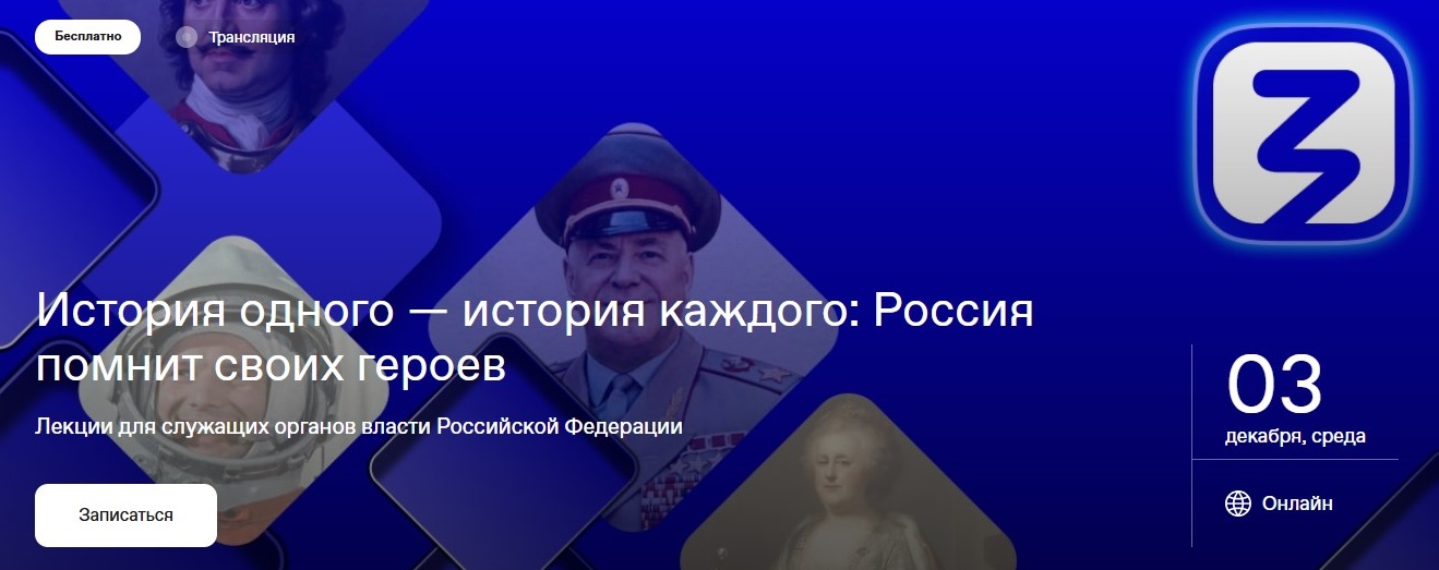 Приглашаем присоединиться к прямому просветительскому эфиру Российского общества «Знание» 03 декабря в 10:00 на тему: «История одного – история каждого: Россия помнит своих героев».