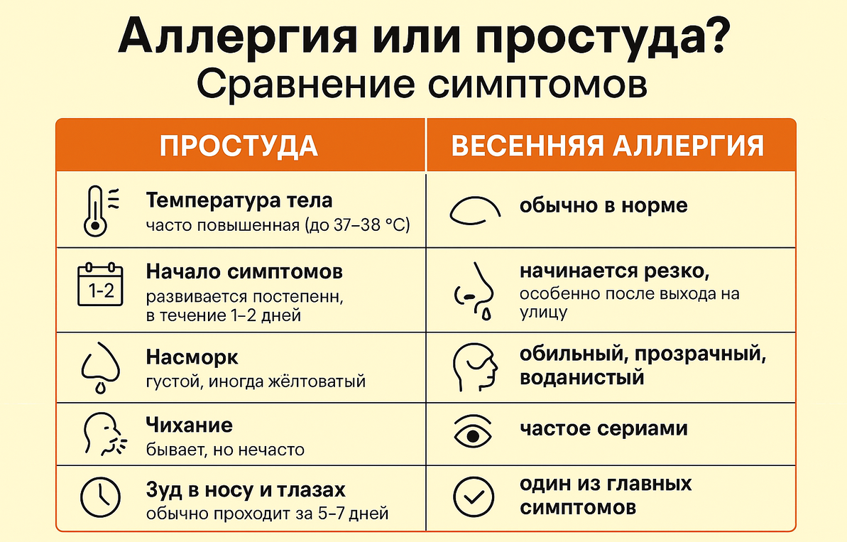 Чтобы определить, страдаете вы от простуды или аллергии, важно научиться «читать» сигналы организма. Хотя у этих состояний много похожих симптомов (насморк, чихание, заложенность носа), есть и ряд отличий, на которые стоит обратить пристальное внимание.