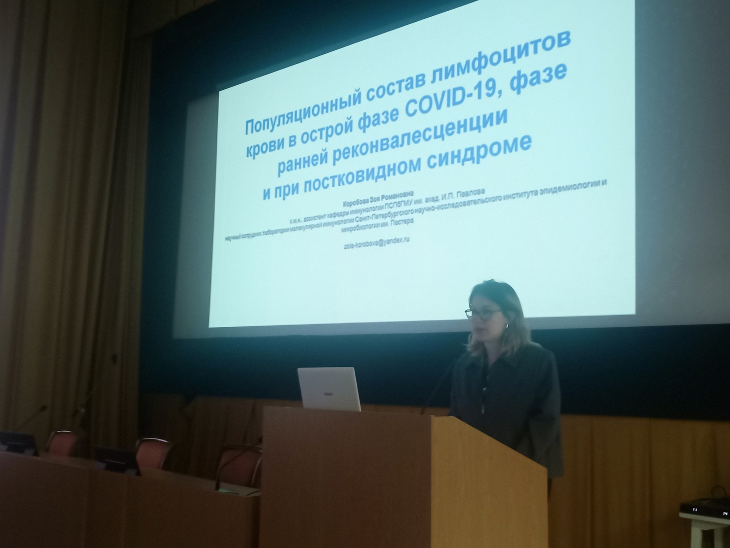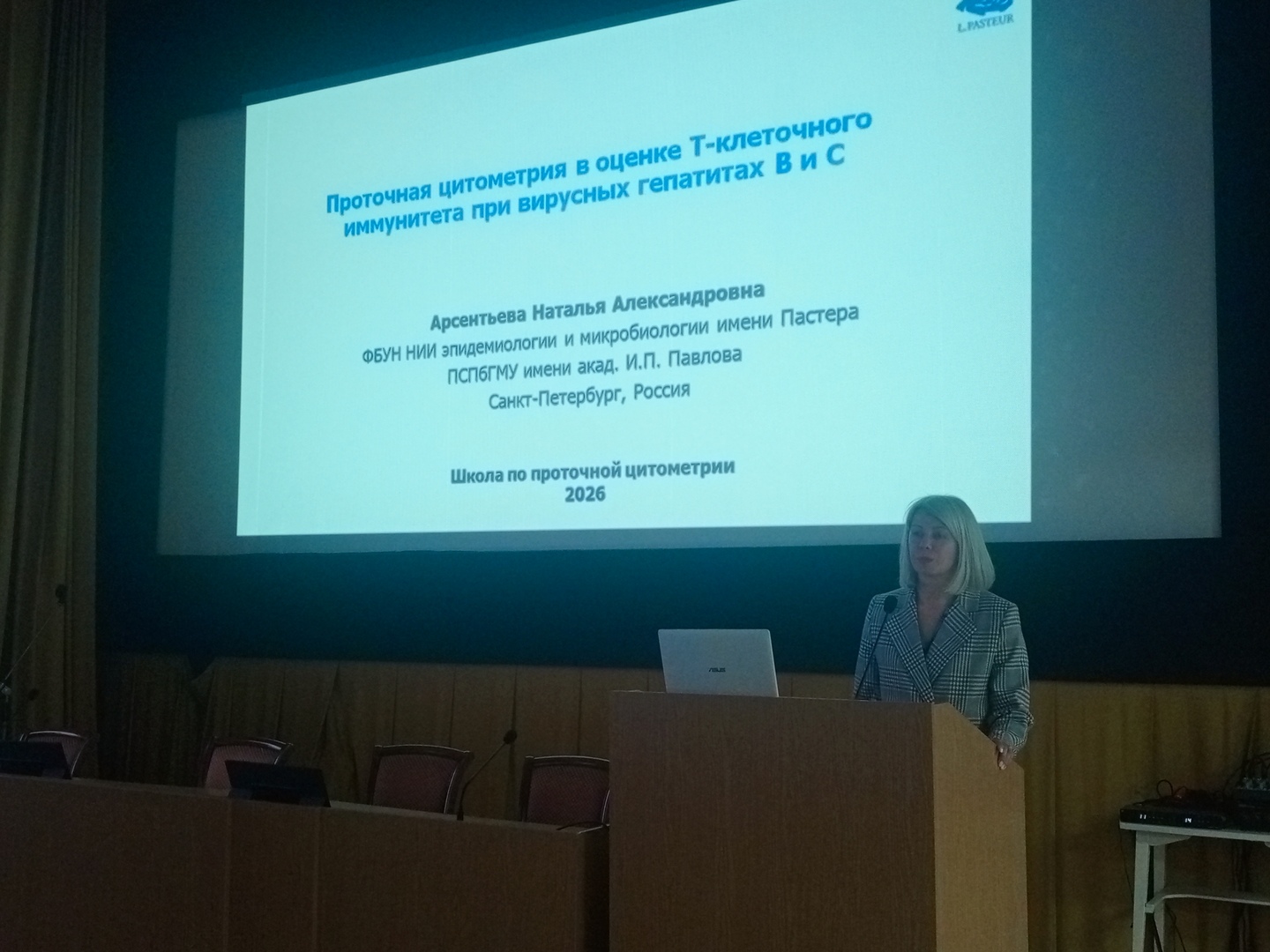 В первый день работы Школы, которая продлится с 22 по 24 апреля, учёные Института выступили с докладами «Популяционный состав лимфоцитов крови в острой фазе COVID-19, фазе ранней реконвалесценции и при постковидном синдроме» (Коробова Зоя Романовна) и «Проточная цитометрия в оценке Т-клеточного иммунитета при вирусных гепатитах В и С» (Арсентьева Наталья Александровна),
