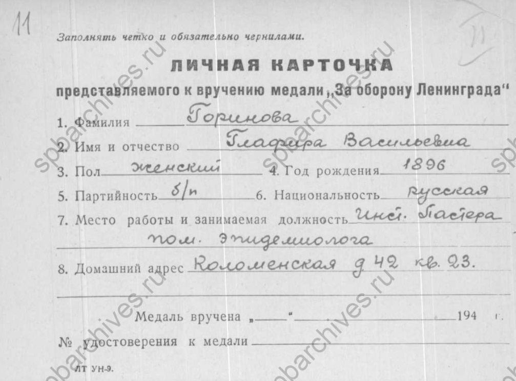 Горинова Глафира Васильевна родилась в 1898 г.