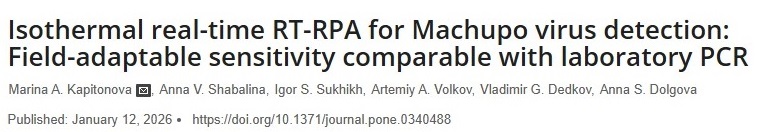 En janvier 2026, la revue PLOS ONE a publié un article intitulé «RT-RPA isotherme en temps réel pour la détection du virus Machupo: une sensibilité adaptable sur le terrain comparable à la PCR en laboratoire». Cet article a été préparé par des scientifiques de l'Institut Pasteur de Saint-Pétersbourg (Marina Kapitonova, Anna Shabalina, Igor Sukhikh, Artemiy Volkov, Vladimir Dedkov et Aanna Dolgova).